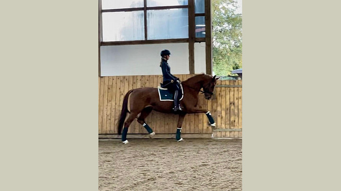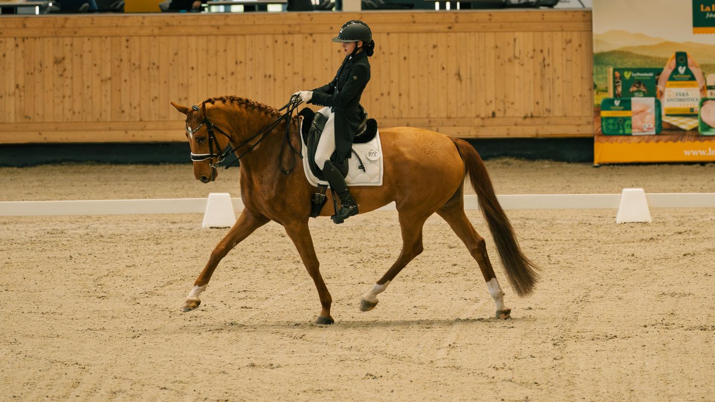 Bonheur de la coeur is a lovely and sweet 9 y.o. mare that has everything you could possibly need in a horse. She has the kindest soul and she always tries her best in every single training. Her powerfull canter and eyecatching trot make this horse stand out in the competition ring. A very nice and easy mare to ride that is never too hot but neither too lazy and a horse that has never had any bad manners such as bucking, rearing et cetera.